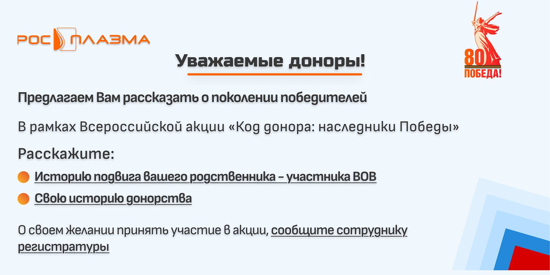 В год 80-летия Победы мы рады представить вам новую рубрику — «Доноры — наследники Победы».