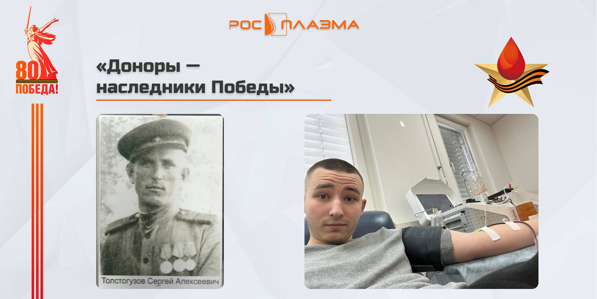2025 год объявлен в нашей стране Годом защитника Отечества и 80-летия Великой Победы. В связи с этим мы запустили акцию «Доноры – наследники Победы», в рамках Всероссийской акции #КодДонораЗащитникиОтечества, инициируемой ФМБА России и Национальным фондом развития здравоохранения.